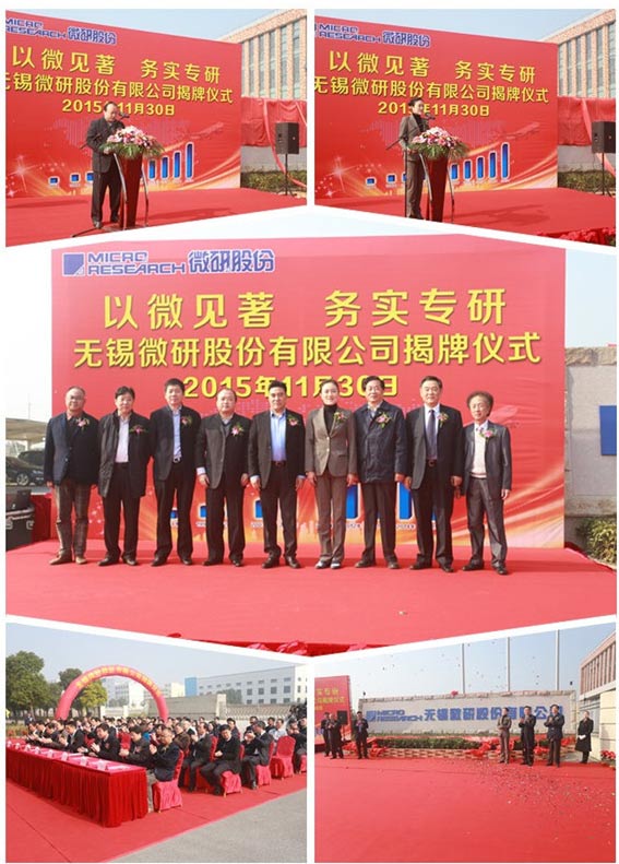 11月30日,彩旗招展,鼓乐震天,无锡微研股份有限公司举行了隆重的股改揭牌仪式。中共无锡市滨湖区委书记袁飞、滨湖区政府副区长戴泉、蠡园经济开发区党工委书记王伟伦、分管工业副主任戴恒明、经济发展局局长许斌兵、江苏模具行业协会会长曹曙峰、无锡模具行业协会秘书长潘尧枬等各界领导、客户代表、公司高层和嘉宾出席了揭牌仪式。
