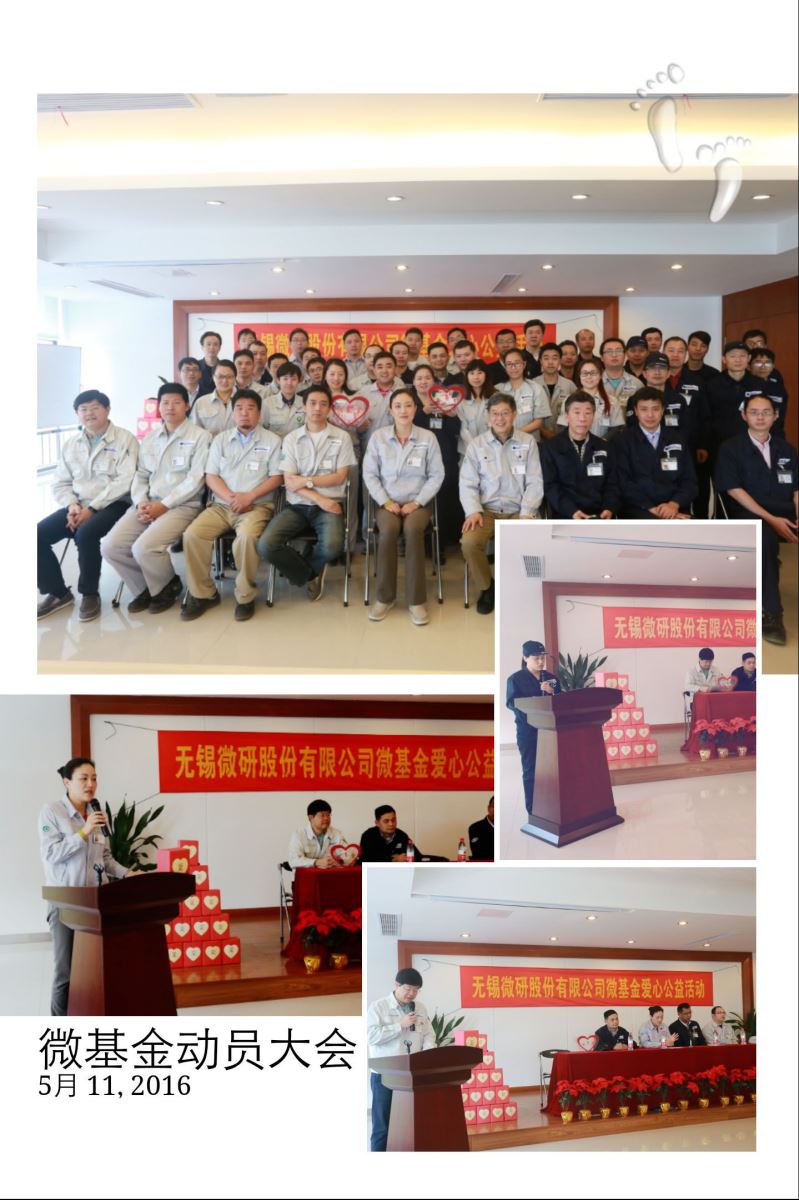 此次爱心公益活动,得到了无锡微研股份、精微机械全体上下的全力支持和热情参与。员工不仅奉献了爱心、收获了快乐,更将对同事之间的关爱和对企业的责任,慷慨激昂地担了起来,展现出了无锡微研独有的关爱、积极、向上、正能量的企业文化,也为公司健康、稳步发展和团队凝聚,起到了积极的助力。